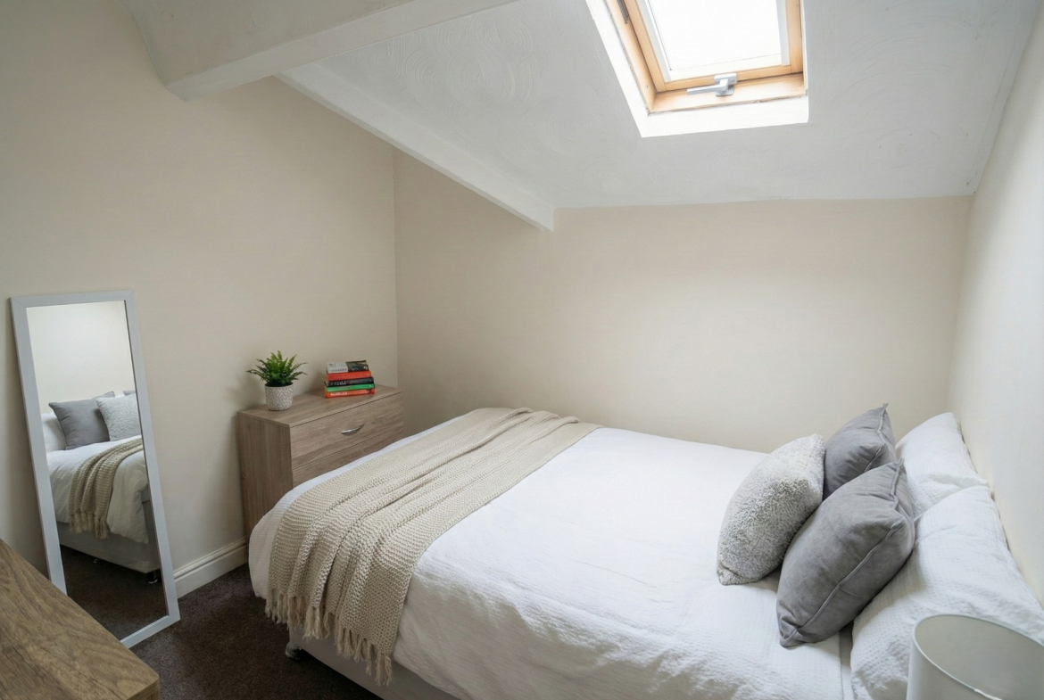 The property comprises of a living room, separate kitchen, double bedroom and a family bathroom. Each room comprises of the following: Bedroom furnished with a double bed, wardrobe and drawers; Bathroom fitted with a three piece white suite with shower over bath; Living room furnished with coffee table and sofa; Kitchen fitted with a fridge/freezer and washing machine.