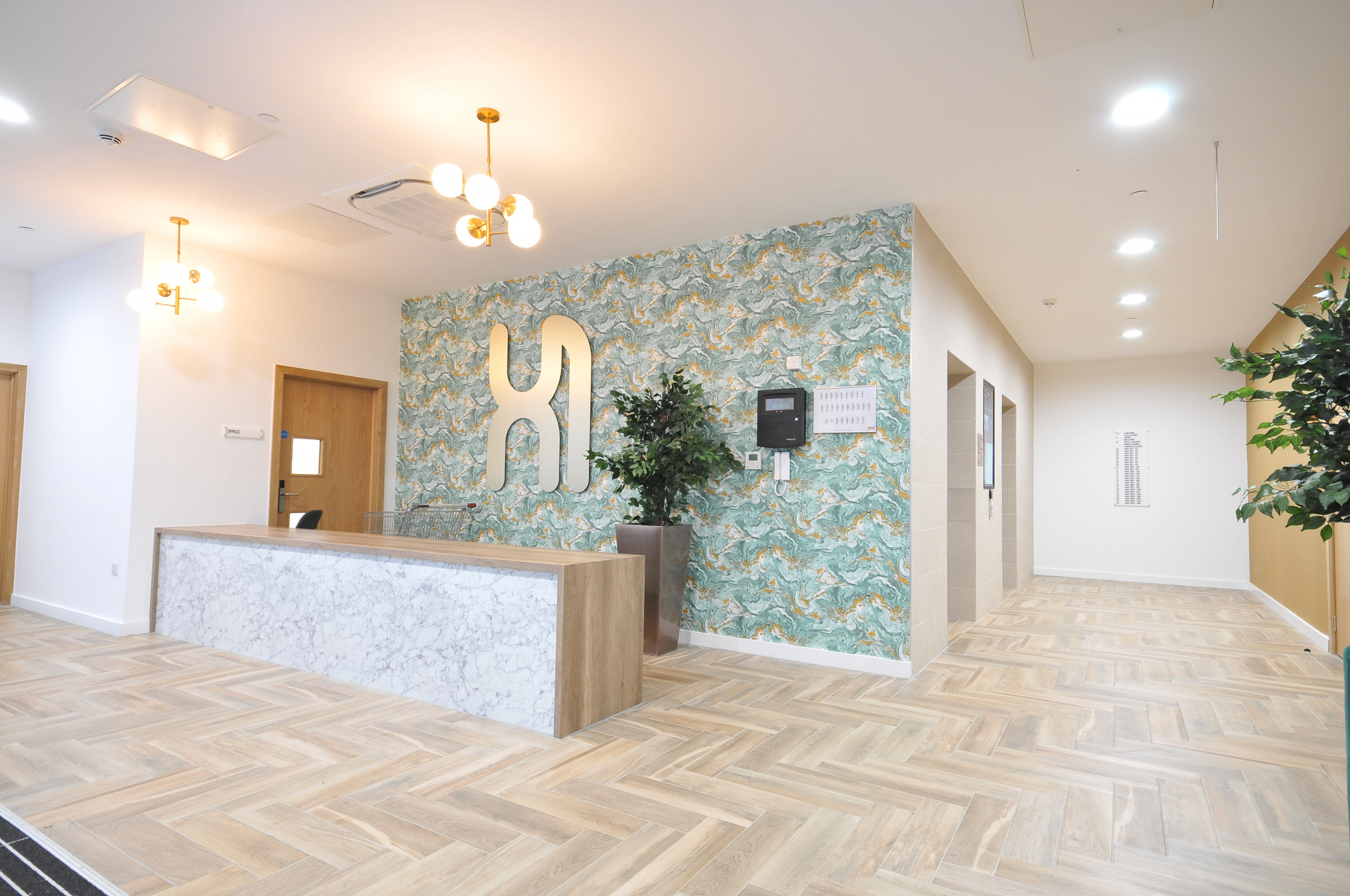 The building also offers a residents-only gym, social space, and terrace space for residents to use.